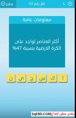 جواب سؤال اكثر العناصر تواجد على الكرة الارضية بنسبة 47 من اللغز رقم 53 من لعبة رشفة للمجموعة الس صقور الإبدآع