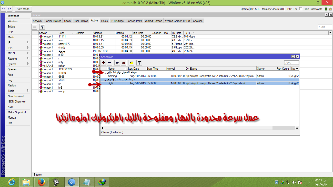 عمل سرعة محدودة بالنهار ومفتوحة بالليل بالميكروتيك اوتوماتيكيا شادى سوفت Speed High And Low In Mikrotik