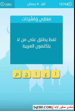 حل سؤال لفظ يطلق على من لا يتكلمون العربية من لغز 4 رمضان من لعبة رشفة رمضانية صقور الإبدآع