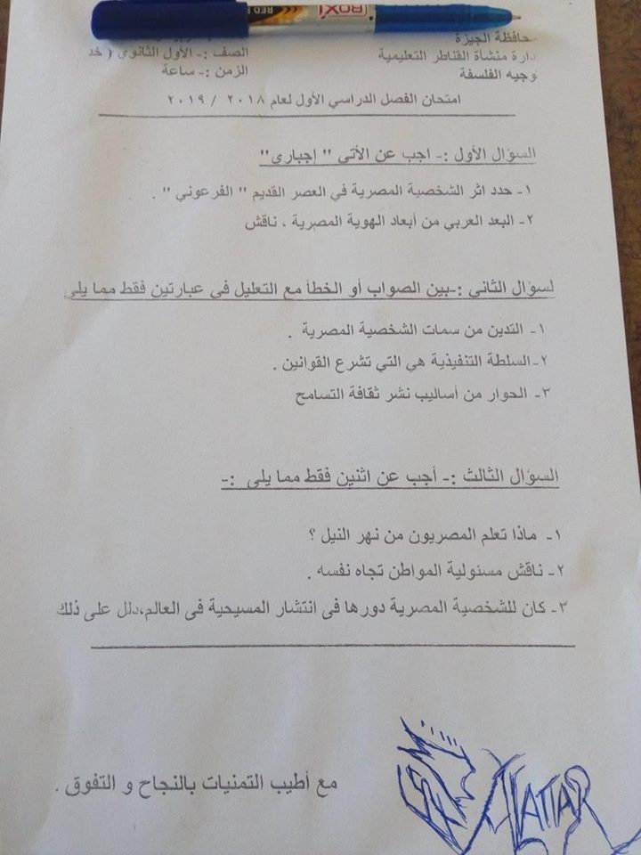 امتحان التربية الوطنية للصف الاول الثانوى ترم اول 2019 محافظة الجيزة